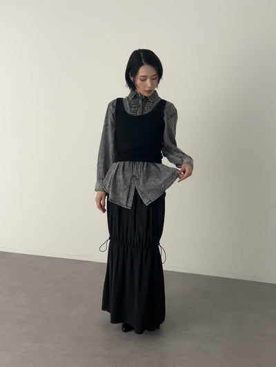 - The mid-length skirt falls to the waist, creating a clean look that goes well with any bottoms.