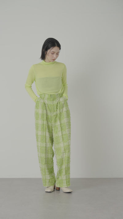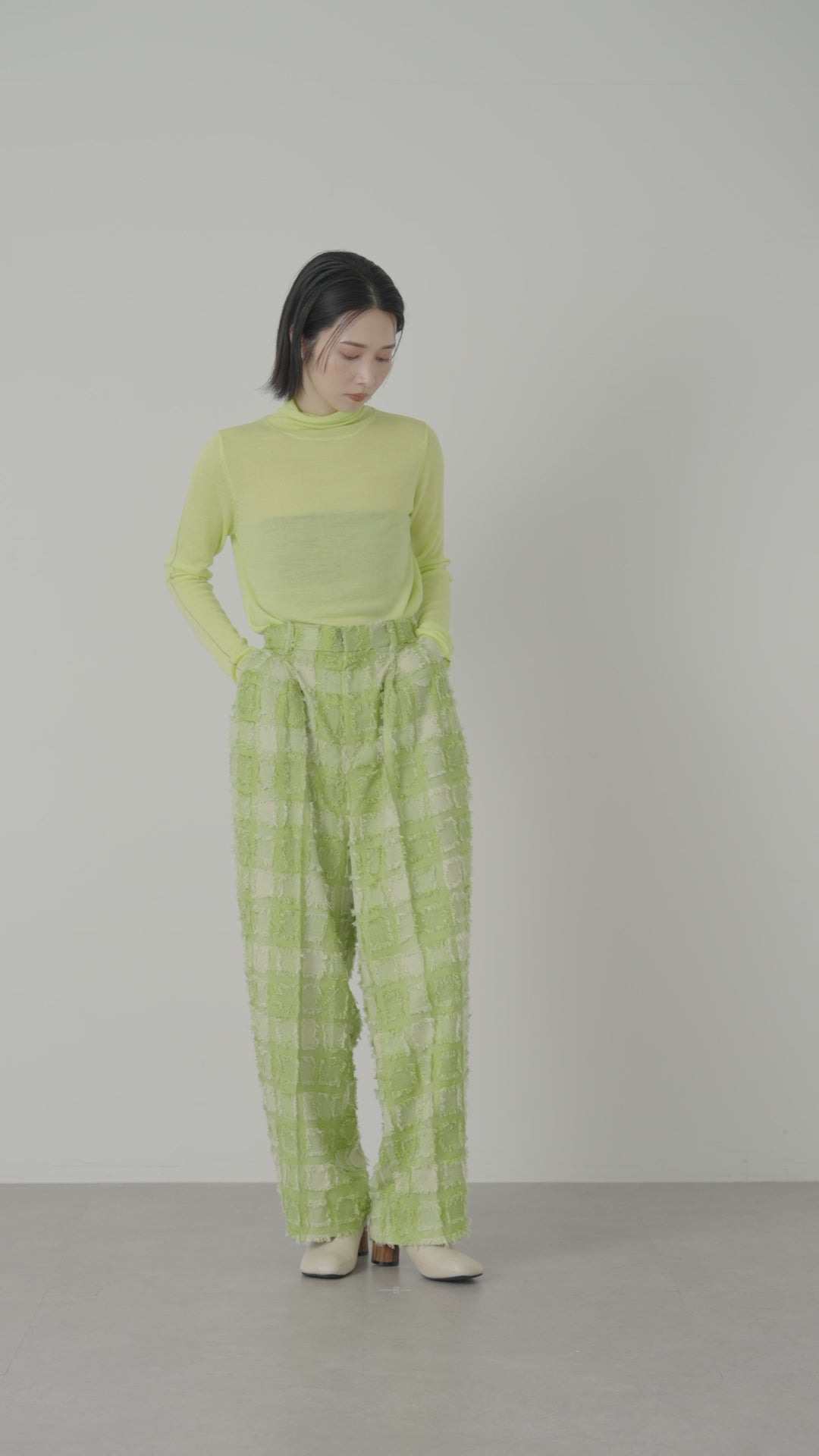 ・表情豊かなブロック柄ジャガードが、シンプルコーデに存在感をプラス。