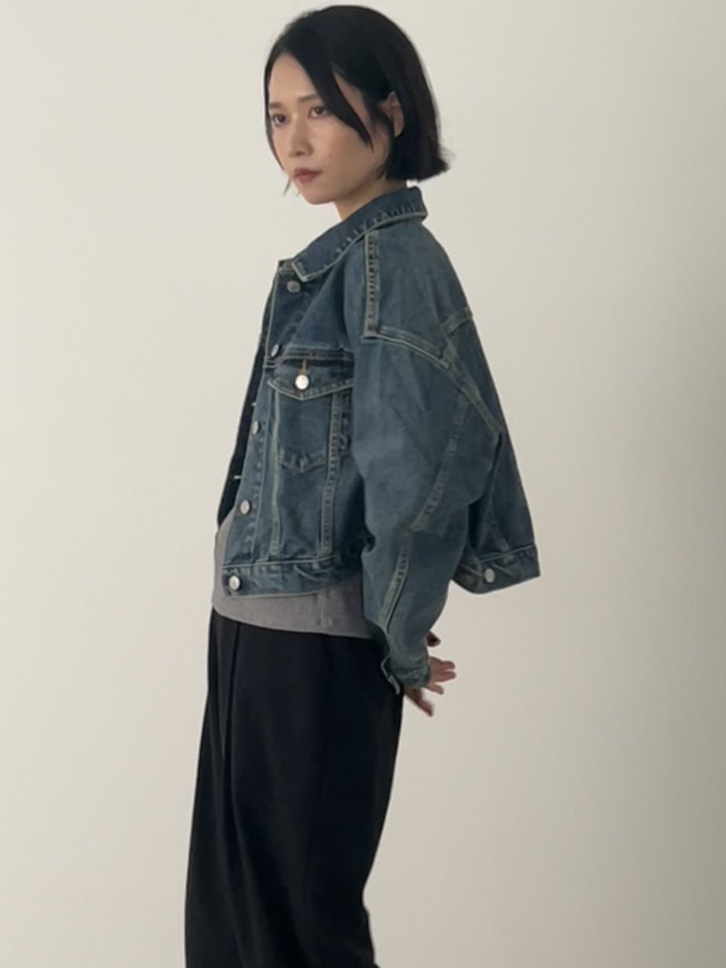 ・コンパクトな着丈なので、ボトムスは細身からワイドパンツまで幅広く合わせられます。