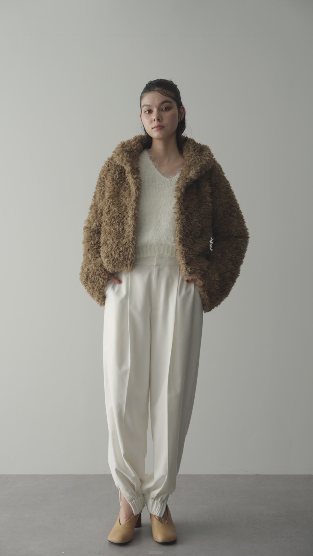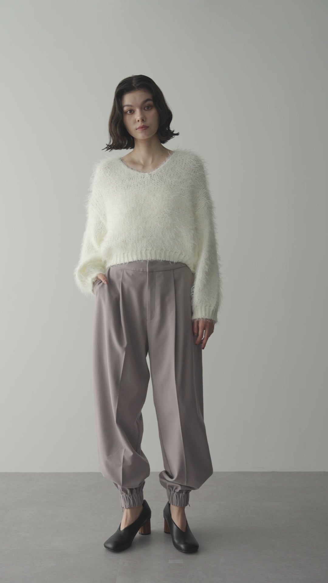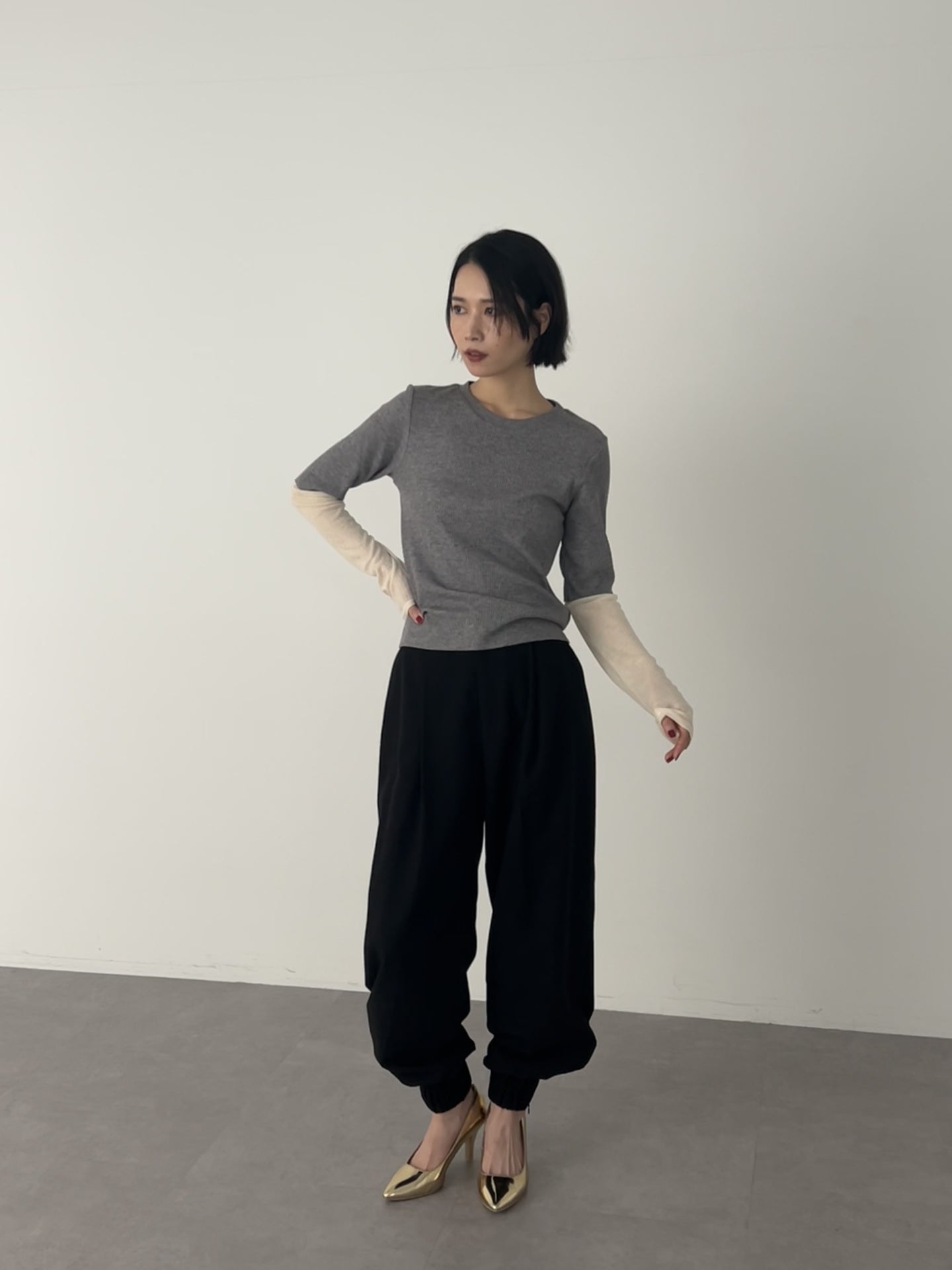 ・タックでゆとりを持たせながら裾にかけてキュッと締めたメリハリが美しいサルエルパンツ。